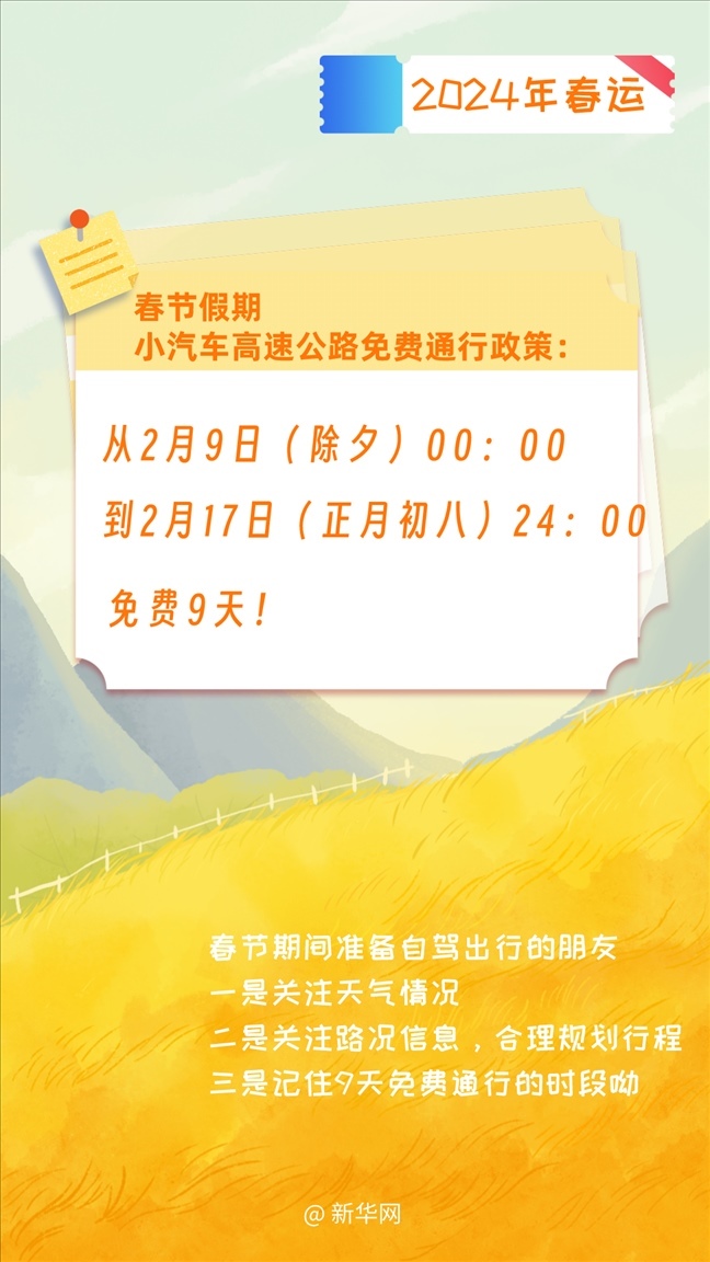 好消息來了!按照國務院要求,交通運輸部已經向社會發(fā)布了公告,今年小汽車高速公路免費通行政策不僅保持不變,而且還比春節(jié)8天假期多了1天!