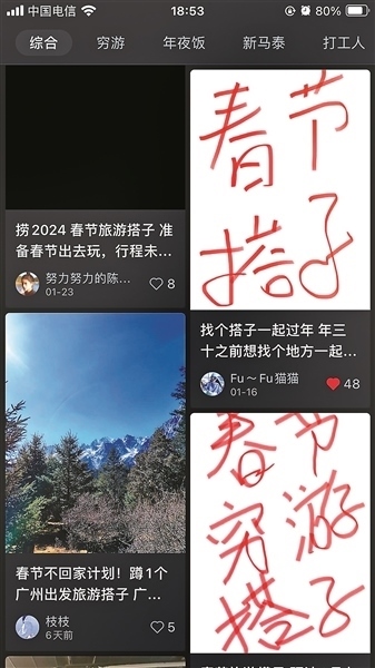 網(wǎng)友在社交媒體上尋找“過年搭子”