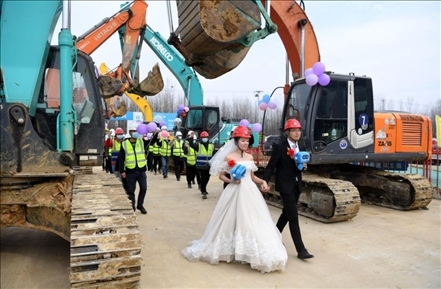2021年2月8日,中建五局安徽公司合肥聚變堆項(xiàng)目技術(shù)人員蔣吉豐和愛人張小菊在項(xiàng)目工地舉辦了一場(chǎng)簡(jiǎn)樸、溫馨的婚禮。