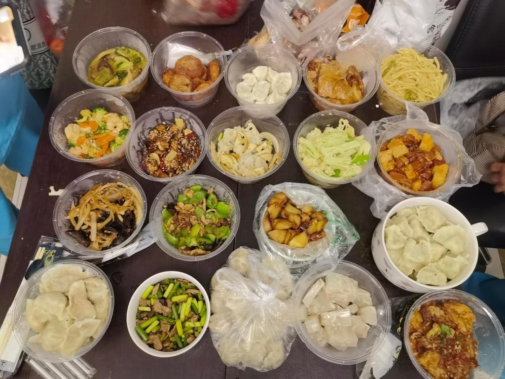 值班的醫(yī)護(hù)人員從家?guī)?lái)的飯菜。(受訪(fǎng)者供圖)