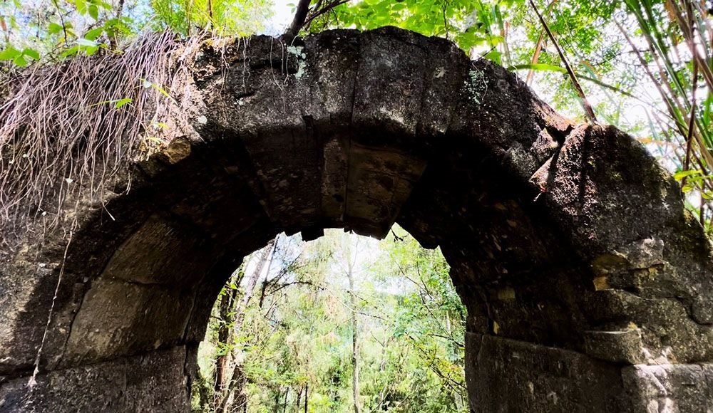 澎湃新聞注意到,石寨門拱頂的確有部分脫落的碎石塊,嵌頓在縫隙里,搖搖欲墜。