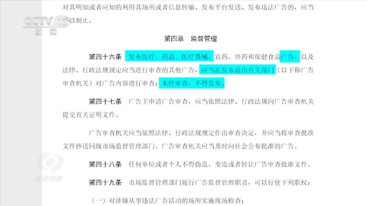 按照我國(guó)廣告法第四十六條的規(guī)定,發(fā)布醫(yī)療、藥品、醫(yī)療器械等廣告,應(yīng)當(dāng)在發(fā)布前由有關(guān)部門(mén)對(duì)廣告內(nèi)容進(jìn)行審查;未經(jīng)審查,不得發(fā)布。也就是說(shuō),醫(yī)療廣告應(yīng)當(dāng)取得相應(yīng)的《醫(yī)療廣告審查證明》才能上線。但記者調(diào)查發(fā)現(xiàn),這些醫(yī)美直播帶貨作為一種醫(yī)療廣告均未獲得《醫(yī)療廣告審查證明》。