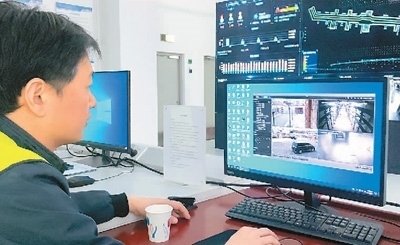 張軍磊在監(jiān)控室進(jìn)行視頻巡檢。本報(bào)記者 吳雪聰攝