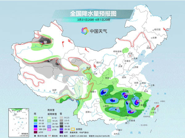 4月1-3日的強(qiáng)降雨過程,江淮、江南一帶將成為降雨重心,江漢、江淮、江南、華南北部、四川盆地東部等地有中到大雨,局地有暴雨或大暴雨,并伴有短時(shí)強(qiáng)對(duì)流天氣。