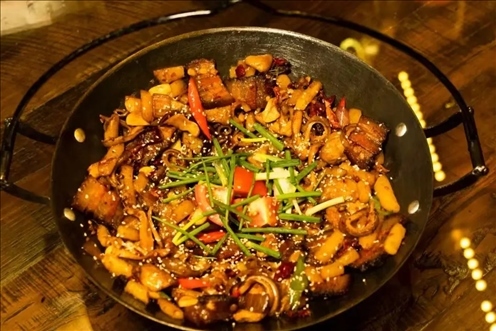 到了張家界,“三下鍋”不得不嘗?!叭洛仭笔侵胳趟?、炒制、燉煮等三道工序。它將臘肉、豆腐、蘿卜等葷素食材一鍋燉,味道香濃,是土家族的傳統(tǒng)菜肴之一。