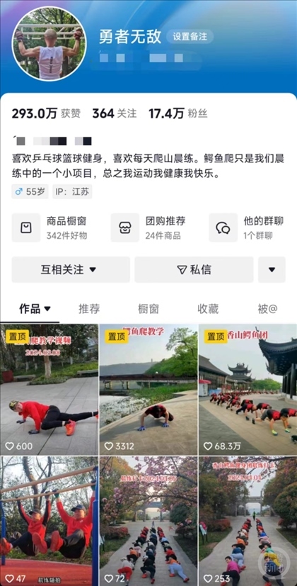 上游新聞記者看到,鱷魚健身團最火的一個視頻獲得了上百萬的點贊量和上千萬瀏覽量,浙江、湖南等地也出現(xiàn)了類似健身團體。