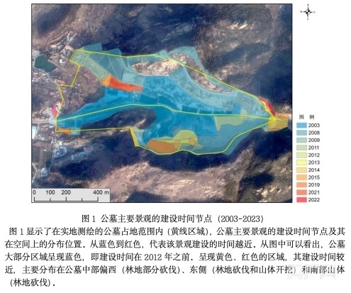 位于青島城陽區(qū)夏莊街道華陰社區(qū)太平山的太平陵公墓,地處嶗山山脈西麓,在嶗山風(fēng)景區(qū)保護(hù)范圍內(nèi)。該公墓是1996年經(jīng)民政部門審批的經(jīng)營性公墓,合法審批面積為87.53畝。遙感衛(wèi)星影像分析顯示,該公墓大面積非法擴(kuò)建已持續(xù)多年,存在毀林挖山建墓地的情況。