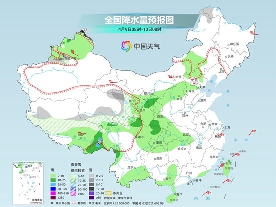 央視網(wǎng)消息:據(jù)中國(guó)天氣網(wǎng)消息,今明兩天(4月9日至10日),南方大部處在雨水間歇期,降水稀少,氣溫逐漸回升;華北、東北多地在冷空氣的影響下,將出現(xiàn)弱降水天氣,同時(shí)部分地區(qū)氣溫下滑。此外需要注意的是,青藏高原中東部雨雪持續(xù),部分地區(qū)有小到中雪或雨夾雪。