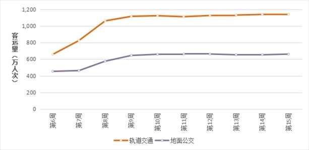 軌道、公交工作日客運量走勢