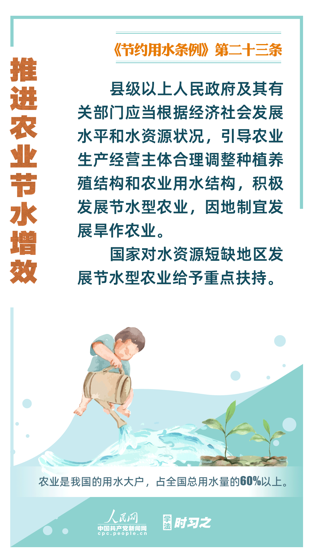 《節(jié)約用水條例》(以下簡稱《條例》)將于2024年5月1日起施行,這是我國首部節(jié)約用水行政法規(guī)。節(jié)約用水,是解決我國水資源短缺問題的根本措施,《條例》以水資源可持續(xù)利用為目標,建立健全節(jié)水制度政策體系,以法治方式和法治途徑實現(xiàn)水資源節(jié)約集約高效利用,促進全社會節(jié)約用水。
