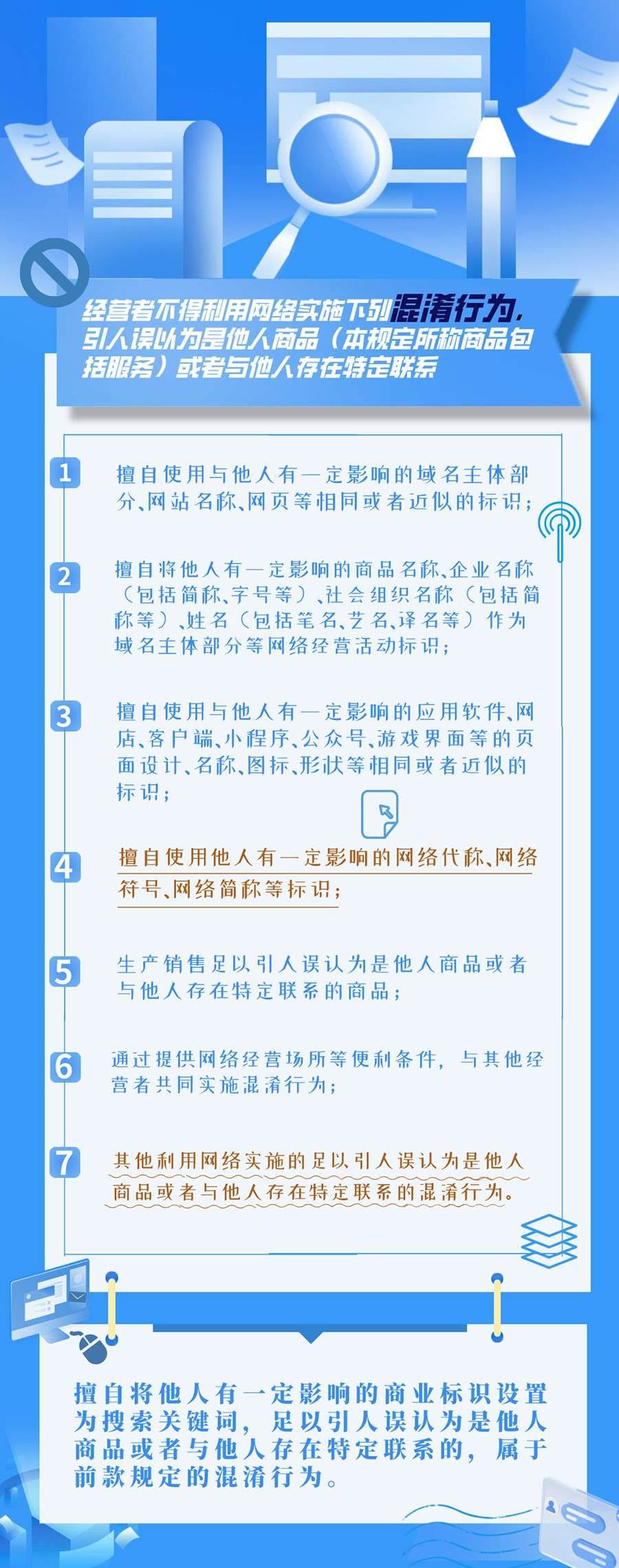 近日,市場(chǎng)監(jiān)管總局發(fā)布《網(wǎng)絡(luò)反不正當(dāng)競(jìng)爭(zhēng)暫行規(guī)定》,《規(guī)定》共五章、43條,其中在“網(wǎng)絡(luò)不正當(dāng)競(jìng)爭(zhēng)行為”部分按類提煉梳理共計(jì)20條,明確認(rèn)定標(biāo)準(zhǔn)。