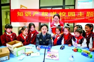 江蘇如皋市版權(quán)局聯(lián)合市場(chǎng)監(jiān)督等部門,圍繞商標(biāo)權(quán)、專利權(quán)等開展“知識(shí)產(chǎn)權(quán)進(jìn)校園”宣傳教育活動(dòng)。新華社發(fā)