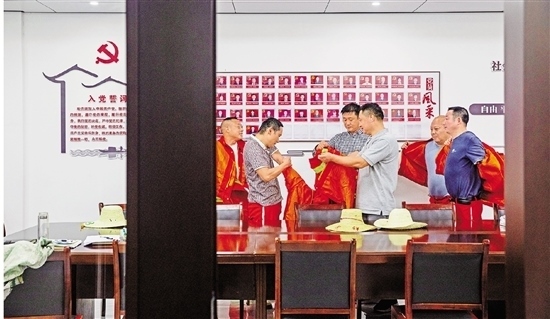在清湖一村村委會會議室,“打鐵花小隊”邊脫防護(hù)服邊交流經(jīng)驗。
