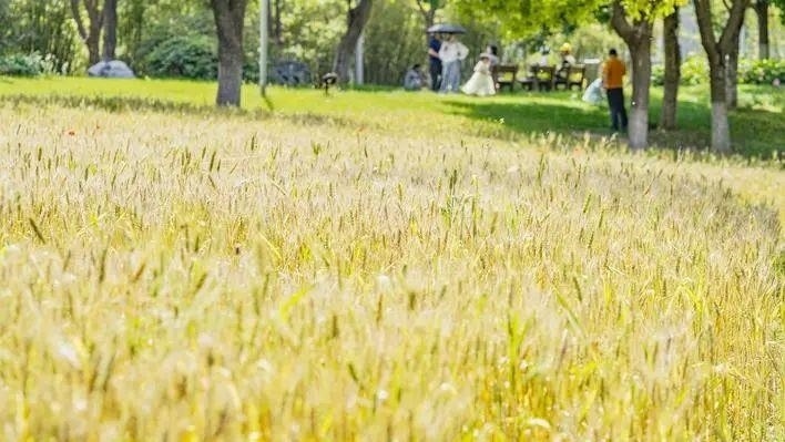 而在湖北武漢園博園景區(qū),也有一塊上千平方米的麥地。如今,這塊麥地上的小麥已經(jīng)成熟,麥穗飽滿,煞是喜人,讓人油然想到一句古詩(shī):“最愛(ài)壟頭麥,迎風(fēng)笑落紅?!睋?jù)報(bào)道,園方表示,今年擬與園區(qū)研學(xué)組合作,將開展割麥子活動(dòng)。研學(xué)導(dǎo)師會(huì)對(duì)孩子們進(jìn)行麥子科普,以及如何正確割麥(割麥、捆麥、運(yùn)麥、拾麥)等,同時(shí)還會(huì)用麥穗插花。