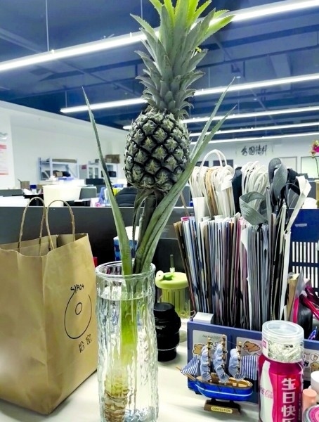 00后楊三日從事新媒體運(yùn)營(yíng)工作,她在工位上養(yǎng)了一個(gè)菠蘿,“養(yǎng)菠蘿是一件很酷的事情,不僅能觀賞,還能吃,很配我特立獨(dú)行的氣質(zhì)?!彼f(shuō)自從養(yǎng)了菠蘿之后,每天上班時(shí)心情就變得非常好。“我的工位就像熱帶雨林一樣,提前進(jìn)入了春天?!?/p>