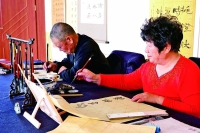 市民在社區(qū)文化中心練習(xí)書法。光明日報記者 郭俊鋒攝