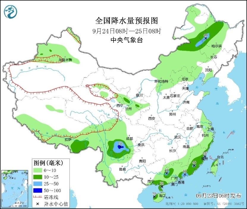 人民網(wǎng)北京9月23日電 (溫璐、高清揚)據(jù)中央氣象臺消息,昨日,強降雨集中在福建、廣東及海南島等地,監(jiān)測顯示,浙江東南部、福建東部沿海、廣東東南部和雷州半島、海南島、臺灣島北部和西南部等地部分地區(qū)出現(xiàn)暴雨或大暴雨,福建福州、莆田,海南??凇⑽牟?、澄邁等地局地特大暴雨(250~424毫米)。