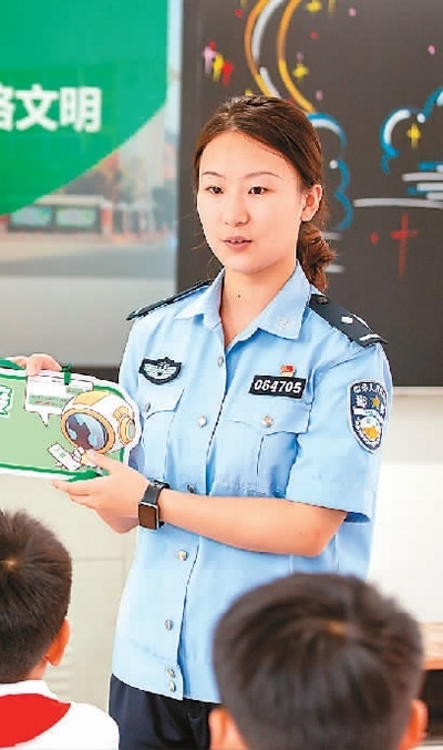 江西省宜春市公安局袁州分局鳳凰派出所民警在黃頗小學向?qū)W生講解防范網(wǎng)絡(luò)詐騙等知識。周 亮攝(人民視覺)