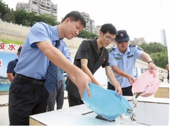 近日,梧州市龍圩區(qū)人民法院聯(lián)合區(qū)人民檢察院、梧州市農(nóng)業(yè)綜合行政執(zhí)法支隊(duì)漁政大隊(duì),在西江梧州段水生生物放流平臺(tái)增殖放流魚(yú)苗。