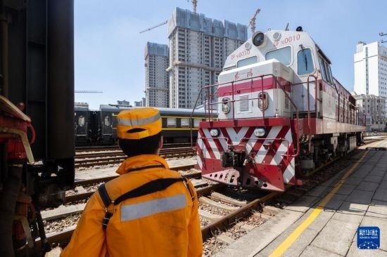 近期,上海持續(xù)高溫天氣。在中國鐵路上海局集團有限公司上海站運轉(zhuǎn)車間,調(diào)車員冒著高溫堅守崗位,確保暑運列車運行安全。