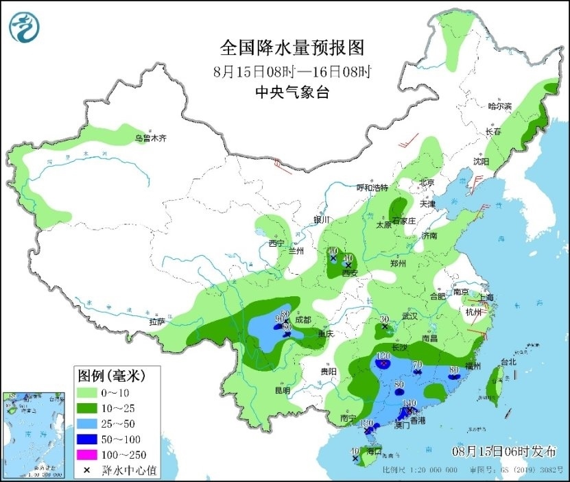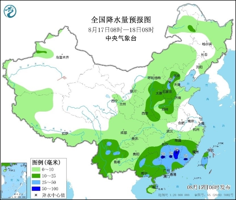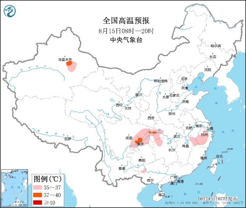 未來三天,江南南部、華南及四川盆地等地部分地區(qū)有分散性強降雨,并伴有強對流天氣,降雨強度大;西北地區(qū)東部、內蒙古、華北、東北地區(qū)、黃淮等地有一次降雨過程,青海、甘肅、寧夏、陜西等地部分地區(qū)已出現較強降雨,需防范持續(xù)降雨和局地短時強降雨可能引發(fā)的次生災害。由于副熱帶高壓減弱和降雨鋪展,高溫明顯減弱。高溫主要集中在四川盆地,湖北、湖南、浙江、江蘇等地雖有高溫,但范圍較小。