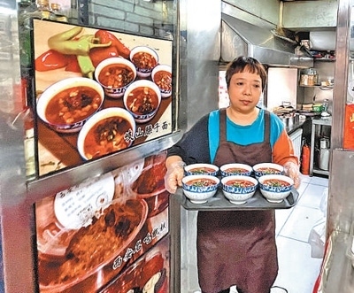 正值中午用餐高峰,程亞娟(見圖)在廚房和前廳間來(lái)回穿梭,額頭上掛滿汗珠。