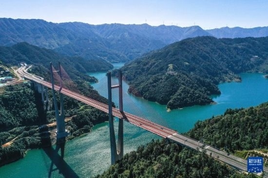 10月25日,車輛在貴州劍黎高速南孟溪大橋上行駛(無人機照片)。
