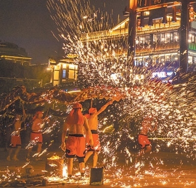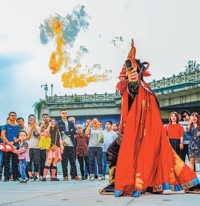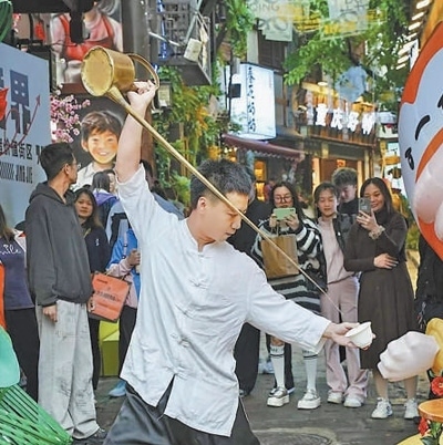 豐富文旅業(yè)態(tài)演員在進(jìn)行非遺表演。磁器口古鎮(zhèn)管委會(huì)供圖