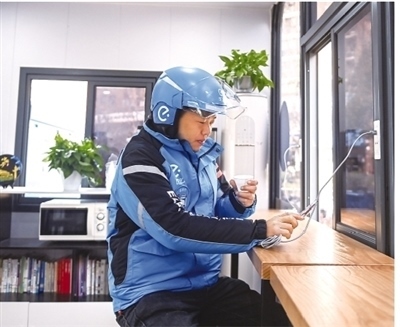 “一張床位每個月僅600多元,是市場價的1/3?!毙埵呛幽先耍诤贾輳氖驴爝f行業(yè)已有7年,如今他不僅住進(jìn)了廉價且環(huán)境優(yōu)美的公寓,工作之余還能在公寓內(nèi)的“尚小驛”服務(wù)站點(diǎn)歇腳休息,在“小哥食堂”就餐。