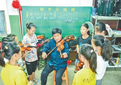教學(xué)漸漸步入正軌后,張玉立還將支教的范圍擴大到其他4個同樣偏僻的鄉(xiāng)鎮(zhèn)。山路崎嶇,往返山間,張玉立樂此不疲。“‘把琴聲送進(jìn)大山’不僅能夠豐富孩子們的生活,還可以幫助他們走出大山?!睆堄窳⒄f,經(jīng)過一段時間的教學(xué)以后,自己開始有意識地挑選對小提琴有興趣、有天賦的孩子,成立小提琴班,利用課外時間進(jìn)行專門訓(xùn)練。