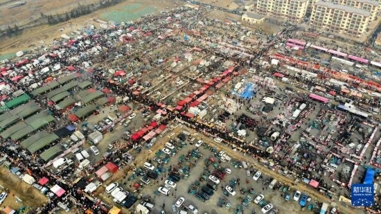 這是位于青島西海岸新區(qū)的泊里大集現(xiàn)場(chǎng)(1月18日攝,無人機(jī)照片)。