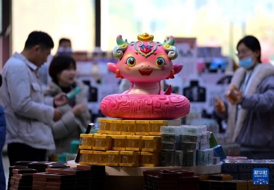 1月29日,游客在安徽博物院選購紀念品。