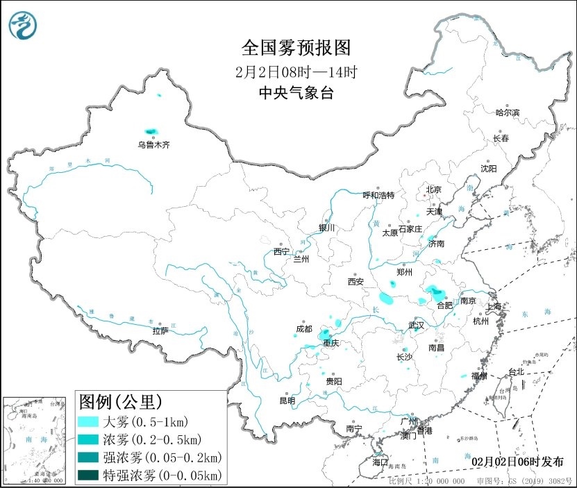 預(yù)計,2月2日早晨至上午,瓊州海峽部分海域、安徽西部、湖北北部、重慶西部等地將有能見度不足1公里的大霧,局地有能見度不足500米的濃霧。