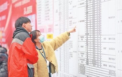2月5日,在廣西柳州市融安縣2025年“春風(fēng)行動”暨粵桂協(xié)作招聘會上,求職者了解就業(yè)信息。