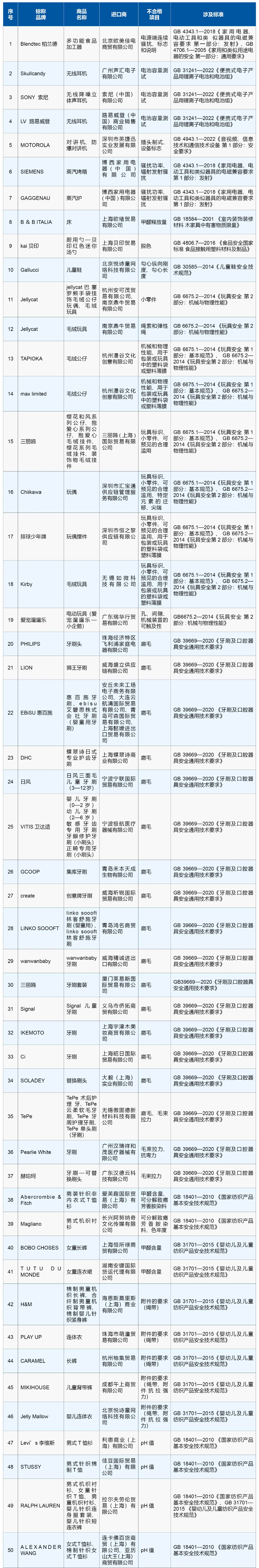 據(jù)海關(guān)總署介紹,不合格情況包括進(jìn)口小家電電池容量測(cè)試、電器輻射發(fā)射項(xiàng)目不合格;進(jìn)口玩具機(jī)械和物理性能、小零件項(xiàng)目不合格;進(jìn)口服裝甲醛含量、可分解致癌芳香胺染料超標(biāo);進(jìn)口家具甲醛釋放量超標(biāo);進(jìn)口牙刷磨毛不合格等。