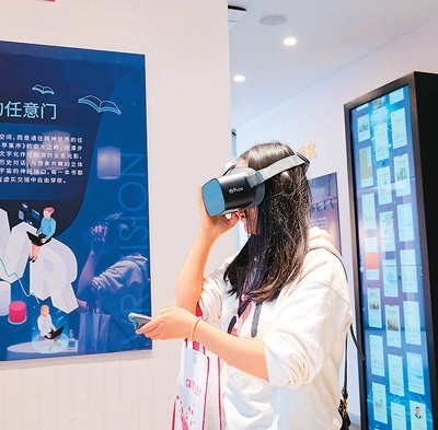 近日,云南省第四屆全民閱讀大會(huì)在昭通市昭通古城舉行?;顒?dòng)包括惠民書展、非遺體驗(yàn)、文創(chuàng)展銷等活動(dòng),營造愛讀書、讀好書、善讀書的書香氛圍。圖為市民在云南省昭通市一家書店體驗(yàn)VR閱讀。