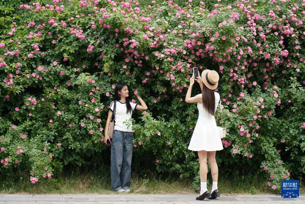 游人在西安曲江池遺址公園內(nèi)拍照(4月25日攝)。