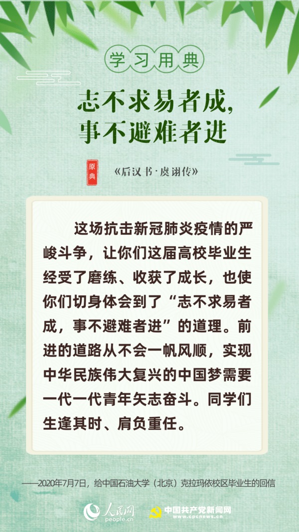 【編者按】“志不求易者成,事不避難者進?!苯?,習近平總書記給中國石油大學(北京)克拉瑪依校區(qū)畢業(yè)生回信,對廣大高校畢業(yè)生提出殷切期望。“人生在勤,勤則不匱”“積土而為山,積水而為?!薄陙恚暯蕉啻我迷娋涞涔?,激勵包含廣大青年在內(nèi)的全黨全國各族人民拼搏奮進、埋頭苦干。正值“戰(zhàn)疫”“戰(zhàn)貧”關鍵時刻,人民網(wǎng)·中國共產(chǎn)黨新聞網(wǎng)與您一起回顧習近平講話中關于“奮斗”的10個名句。