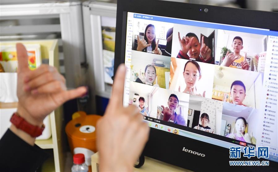 位于吉林省長(zhǎng)春市的東北師范大學(xué)第二附屬小學(xué)6年級(jí)學(xué)生參加“云班會(huì)”(5月29日攝)。新華社記者許暢攝
