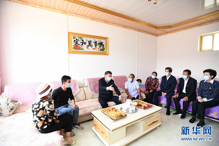 6月8日至10日,習近平在寧夏考察。這是6月8日下午,習近平在吳忠市紅寺堡區(qū)紅寺堡鎮(zhèn)弘德村,同回族村民劉克瑞一家親切交流。 新華社記者 謝環(huán)馳