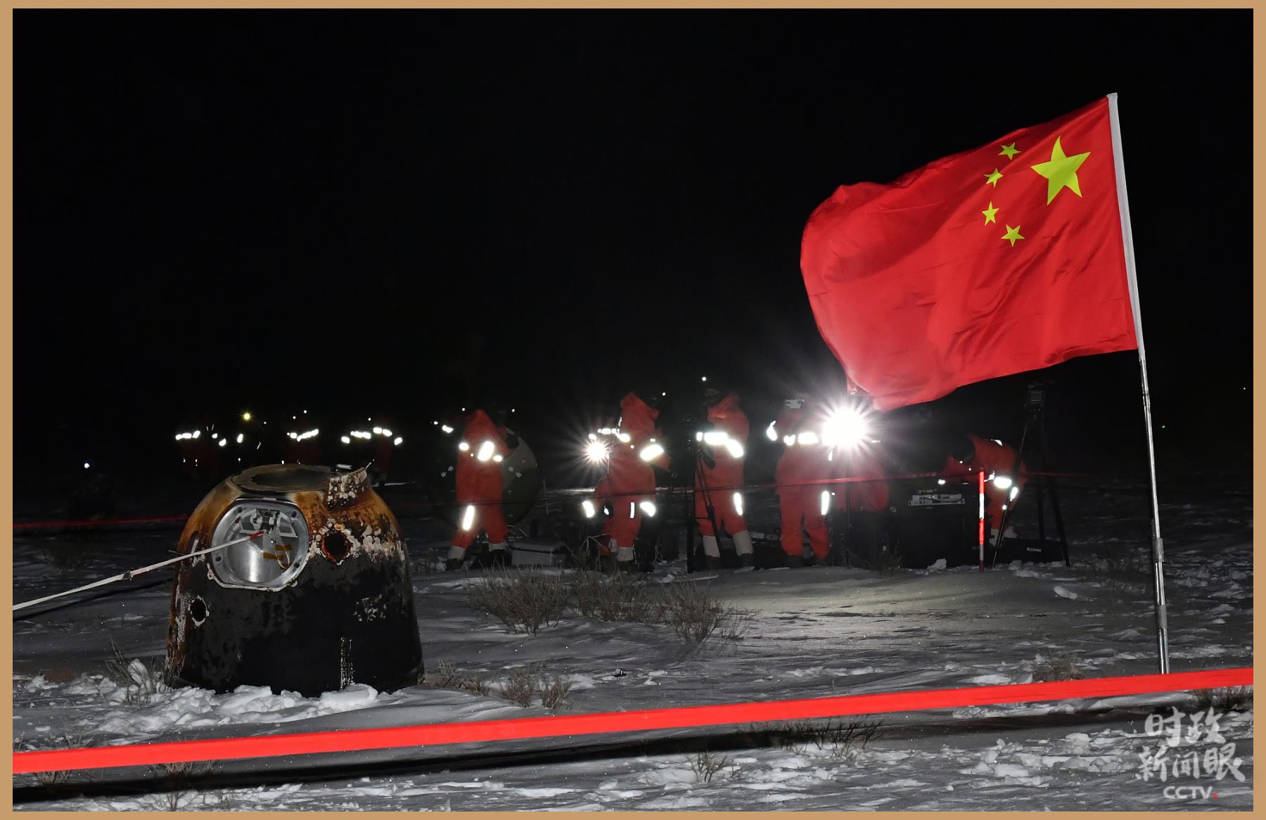 △2020年12月17日凌晨,嫦娥五號(hào)返回器攜帶月球樣品,在內(nèi)蒙古四子王旗預(yù)定區(qū)域安全著陸。