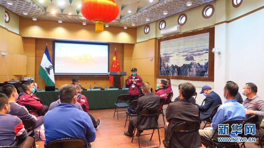 2020年10月3日,中國醫(yī)療專家組成員在萊索托馬塞盧舉辦疫情防控講座。應(yīng)萊索托政府邀請,中國政府抗疫醫(yī)療專家組一行10人于9月27日至10月7日在萊索托開展抗擊新冠疫情援助工作。新華社發(fā)(中國駐萊索托大使館供圖)