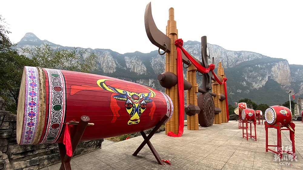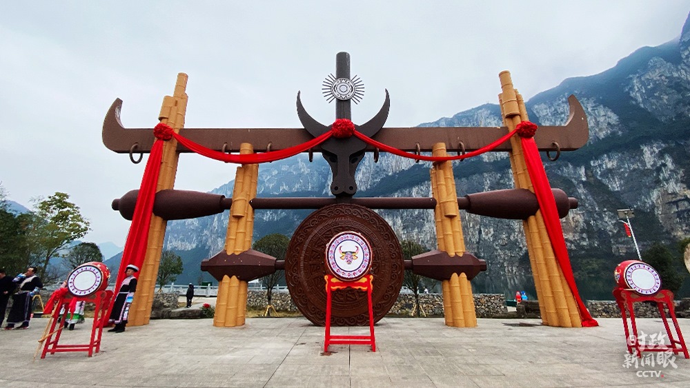 △化屋村文化廣場,牛角是苗族圖騰之一。(總臺央視記者張宇、李輝拍攝)