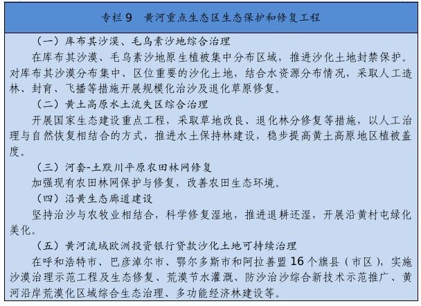 大力推進(jìn)黃河生態(tài)帶建設(shè),統(tǒng)籌水環(huán)境、水生態(tài)、水資源、水安全、水文化,推進(jìn)干支流一體化治理,突出抓好十大孔兌、多沙粗砂區(qū)集中來源區(qū)等水土保持治理,實施河道和灘區(qū)綜合提升治理工程,完善水沙調(diào)控機(jī)制。深化“一湖兩?!奔安旌鼓谞柹鷳B(tài)環(huán)境綜合治理,創(chuàng)新區(qū)域系統(tǒng)治理和流域整體治理舉措,逐步改善生態(tài)環(huán)境。全面加強(qiáng)嫩江、遼河、內(nèi)陸河水系等流域和達(dá)里諾爾、烏拉蓋等濕地生態(tài)保護(hù)修復(fù),深入開展地下水超采綜合治理。
