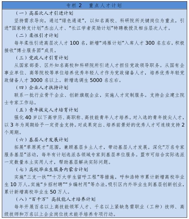 深入落實人才強(qiáng)國戰(zhàn)略,聚焦國家和自治區(qū)重大戰(zhàn)略、重大工程項目和重點(diǎn)產(chǎn)業(yè)領(lǐng)域,銜接國家重大人才工程,健全人才培養(yǎng)、引進(jìn)、使用、評價、流動和激勵機(jī)制,強(qiáng)化用人單位主體責(zé)任,激發(fā)人才創(chuàng)新活力。到2025年,全區(qū)人才資源總量達(dá)到350萬人。