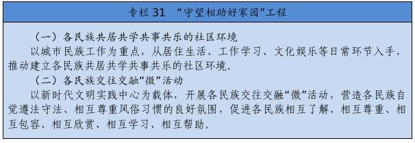從居住生活、工作學(xué)習(xí)、文化娛樂等日常環(huán)節(jié)入手,積極營造各民族共居共學(xué)共事共樂的社會條件,開展各族群眾交流、培養(yǎng)、融洽感情的工作,形成密不可分的共同體。鼓勵各族群眾在民族地區(qū)和其他地區(qū)、城市和鄉(xiāng)村有序流動。做好城市民族工作,讓城市更好接納少數(shù)民族群眾、少數(shù)民族群眾更好融入城市社區(qū)。大力推進(jìn)農(nóng)村牧區(qū)現(xiàn)代化,加快補(bǔ)齊基礎(chǔ)設(shè)施和基本公共服務(wù)短板,不斷滿足各族群眾的美好生活需要,確保實現(xiàn)現(xiàn)代化一個民族也不能少。