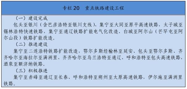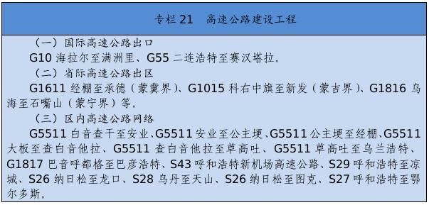 基礎(chǔ)設(shè)施保障更加有力。交通運(yùn)輸、能源外送通道和引調(diào)水骨干工程接續(xù)落地。綜合交通運(yùn)輸體系基本形成,接入全國高鐵網(wǎng),呼和浩特至張家口高速鐵路,通遼、赤峰至京沈高速鐵路連接線,浩勒報吉至吉安鐵路順利建成,建成高速鐵路404公里。全區(qū)103個旗縣(市區(qū))全部通高等級公路,京新高速臨河至哈密、丹錫高速錫林浩特至巴林右旗等高速公路通車運(yùn)營,所有鄉(xiāng)鎮(zhèn)(蘇木)和具備條件的建制村通硬化路,建成“四好農(nóng)村路”6.6萬公里,綜合交通網(wǎng)總里程達(dá)到22.5萬公里。呼和浩特新機(jī)場開工建設(shè),呼倫貝爾、包頭、通遼等機(jī)場完成改擴(kuò)建。新建通用機(jī)場15個,民用機(jī)場達(dá)到40個。黃河內(nèi)蒙古段二期防洪、引綽濟(jì)遼、東臺子水庫等重大水利工程建設(shè)順利推進(jìn)。全區(qū)5G基站突破1萬個。建成5條特高壓外送電通道??耸部蓑v至北京煤制氣管道投入運(yùn)營。呼和浩特地鐵1、2號線一期工程建成運(yùn)營。