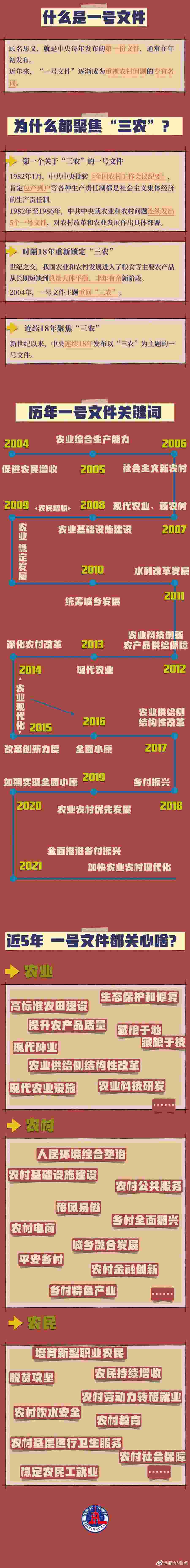21日,新華社受權(quán)發(fā)布《中共中央 國務(wù)院關(guān)于全面推進(jìn)鄉(xiāng)村振興加快農(nóng)業(yè)農(nóng)村現(xiàn)代化的意見》。新世紀(jì)以來,#中央一號(hào)文件連續(xù)18年聚焦三農(nóng)#,究竟深意何在?都是知識(shí)點(diǎn),戳圖了解下↓