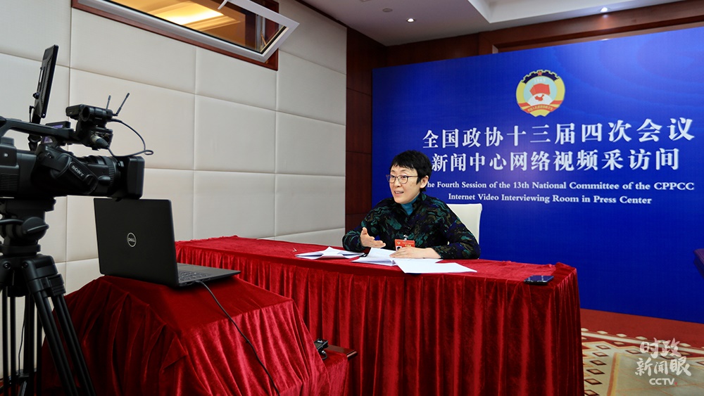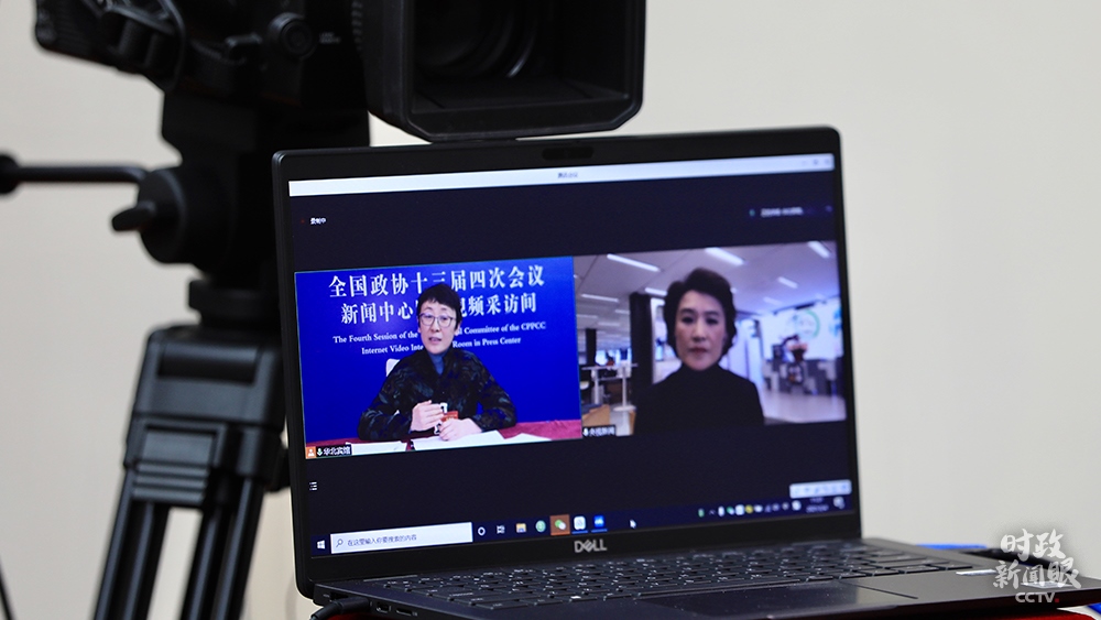 △3月4日上午,全國政協(xié)委員黃艷在網(wǎng)絡視頻采訪間接受總臺央視記者董倩專訪。(總臺央視記者魏幫軍、劉潔拍攝)
