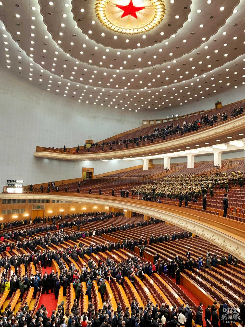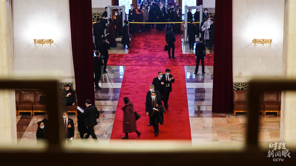 △開幕會結束后,委員們離開會場。(總臺央視記者程鋮拍攝)